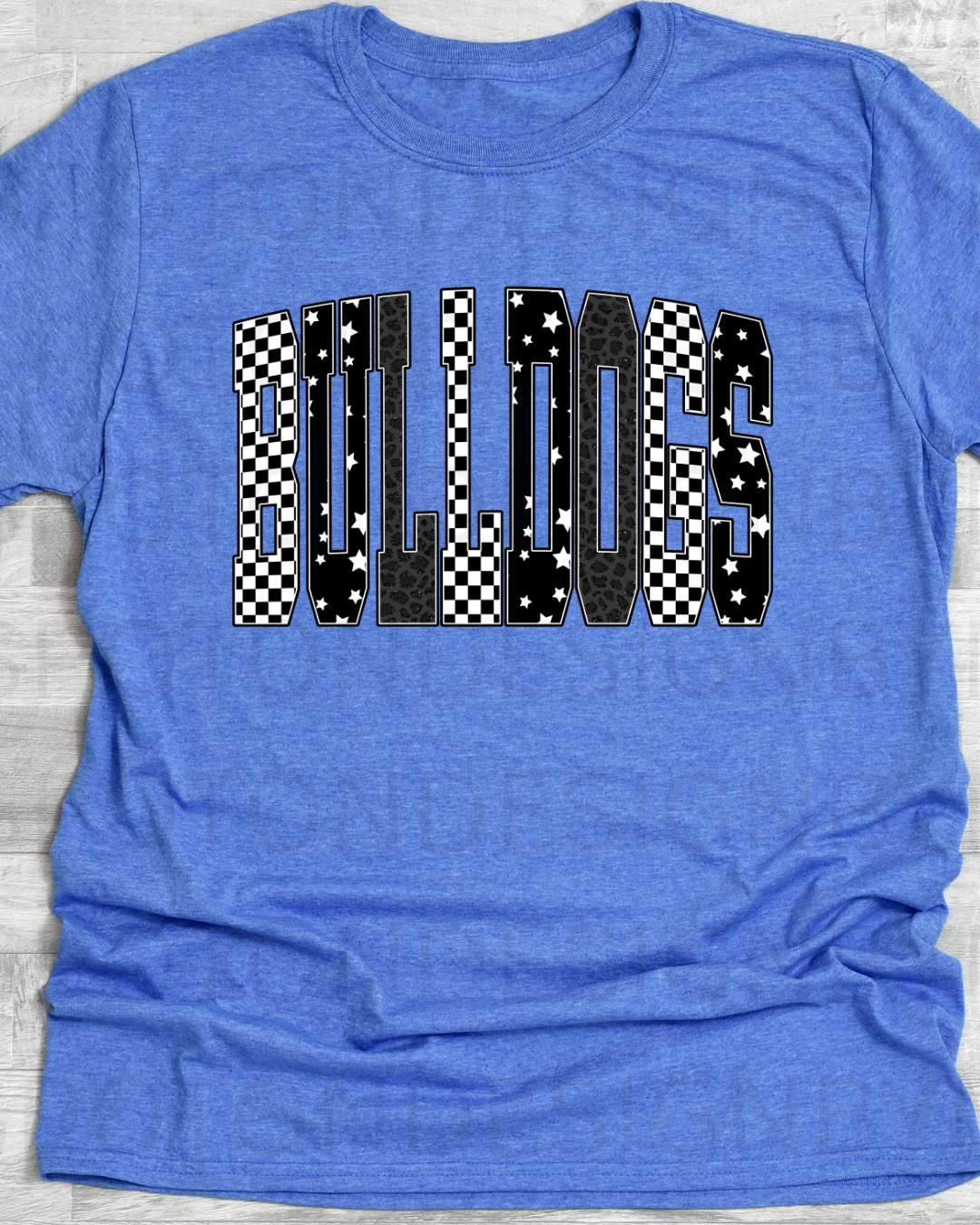 Bulldogs Retro Checkered Leopard Star Letter Tee