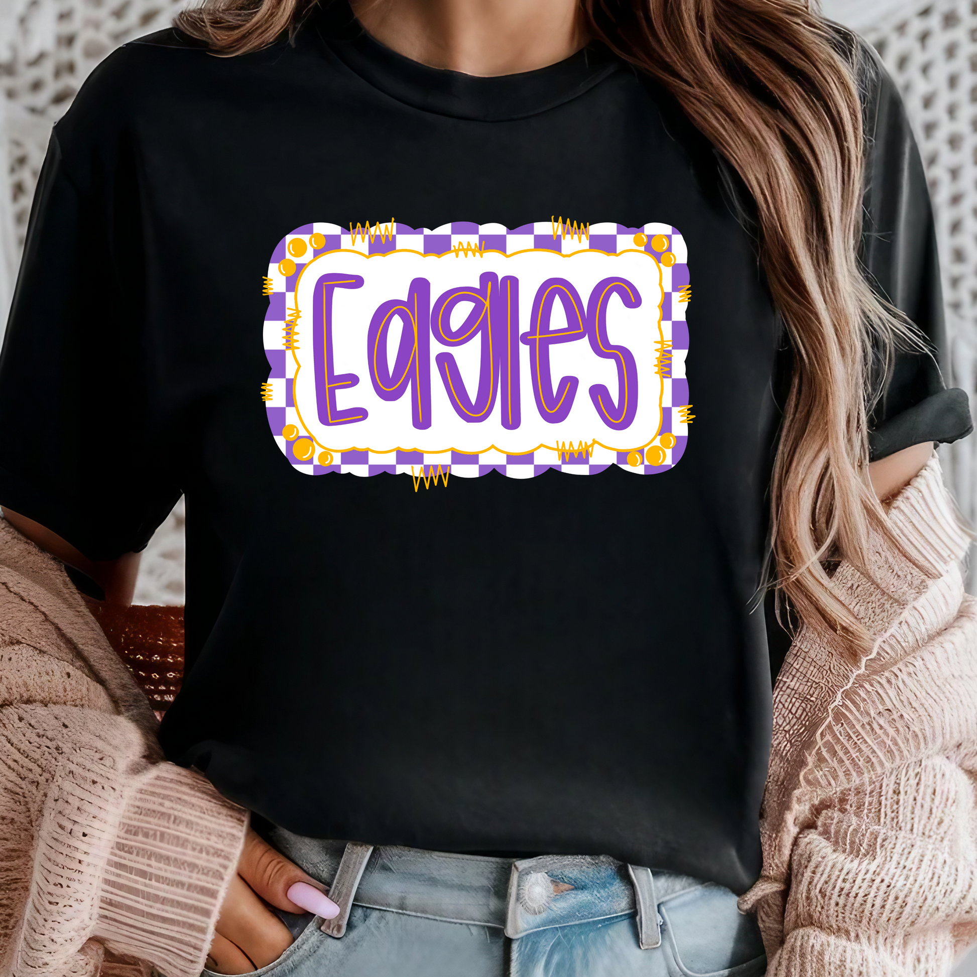 Represent your team with pride in our Eagles Checkered Retro Tee. Made from high-quality materials, this spirit wear is both stylish and durable. Perfect for game day or any casual occasion, show off your Eagles spirit in this classic tee.