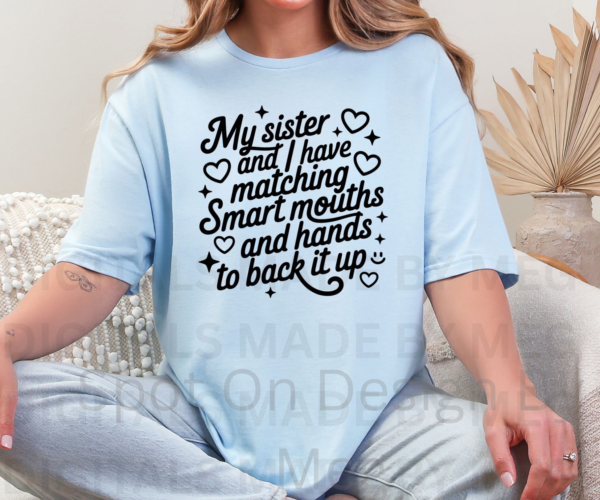 This expertly crafted tee celebrates the special bond between sisters who share both wit and tenacity. The "My Sister And I Have Matching Smart Mouths" design perfectly captures that unique sibling relationship where you're equally equipped with quick comebacks and the courage to back them up. A conversation starter that resonates with anyone who understands sisterly dynamics.